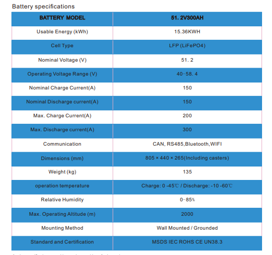 | Battery Model | 51.2V 300Ah |